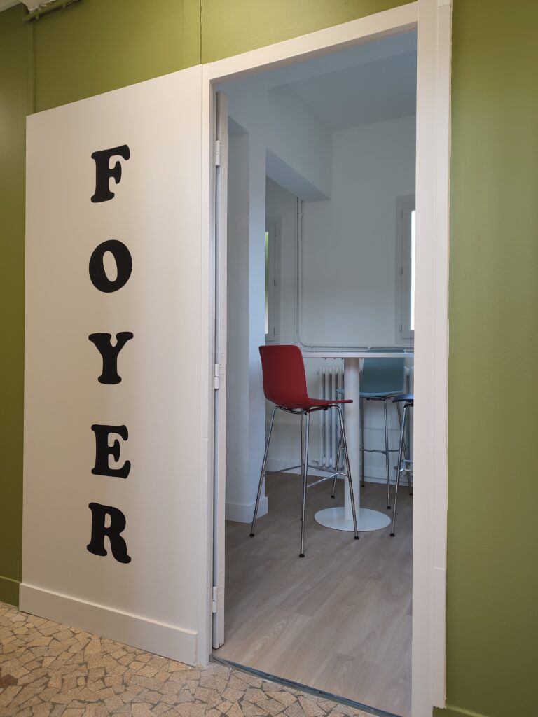 Deux chambres ont été rassemblées pour réaliser le foyer des élèves, lieu de vie et de partage qui n’existait pas auparavant.